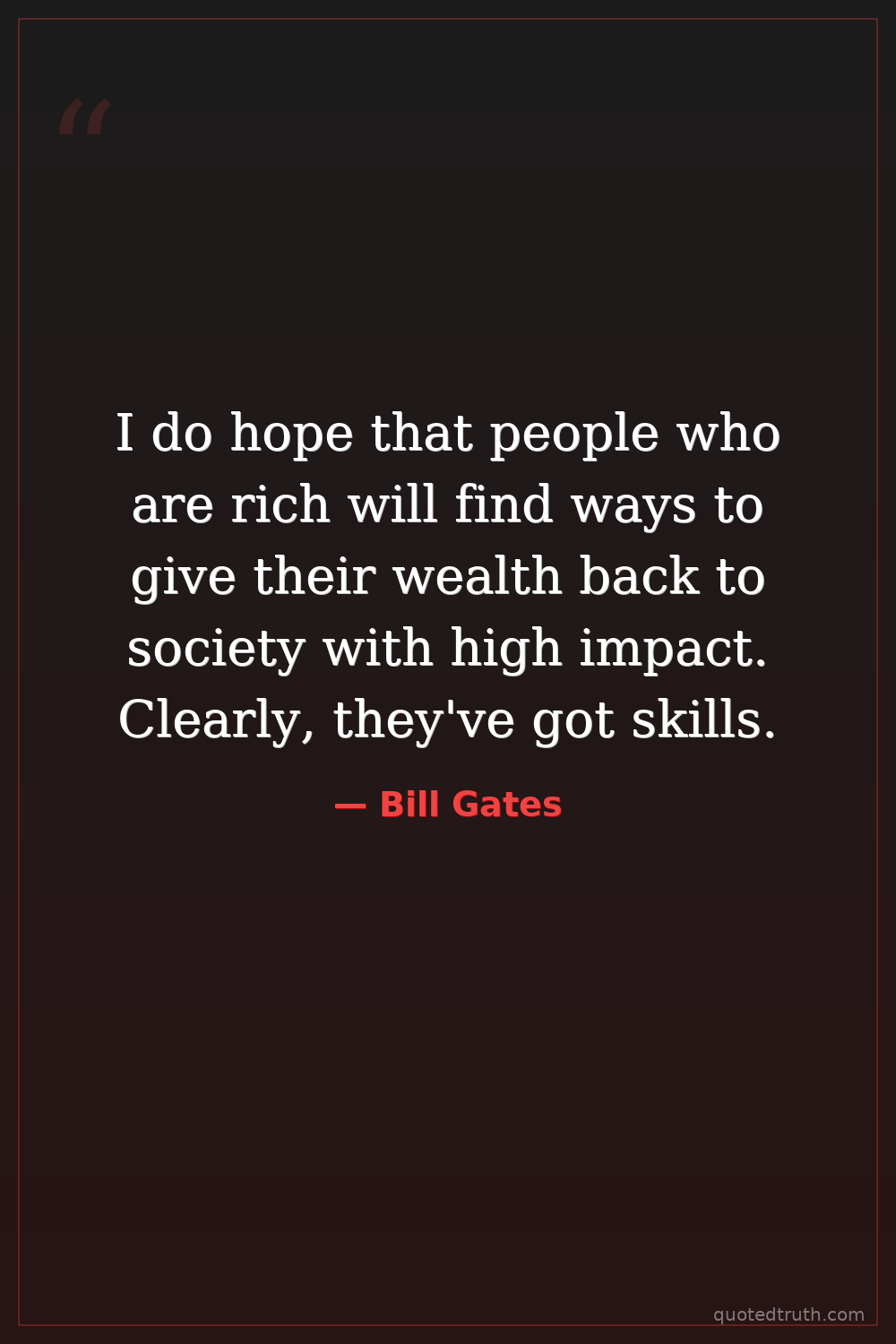 I do hope that people who are rich will find ways to give their wealth back to society with high impact. Clearly, they've got skills.