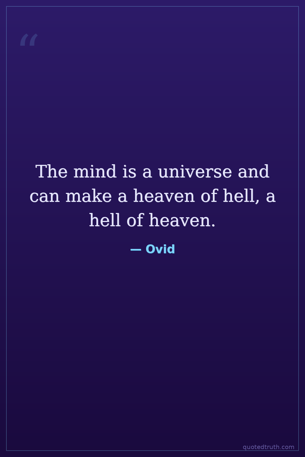 The mind is a universe and can make a heaven of hell, a hell of heaven.