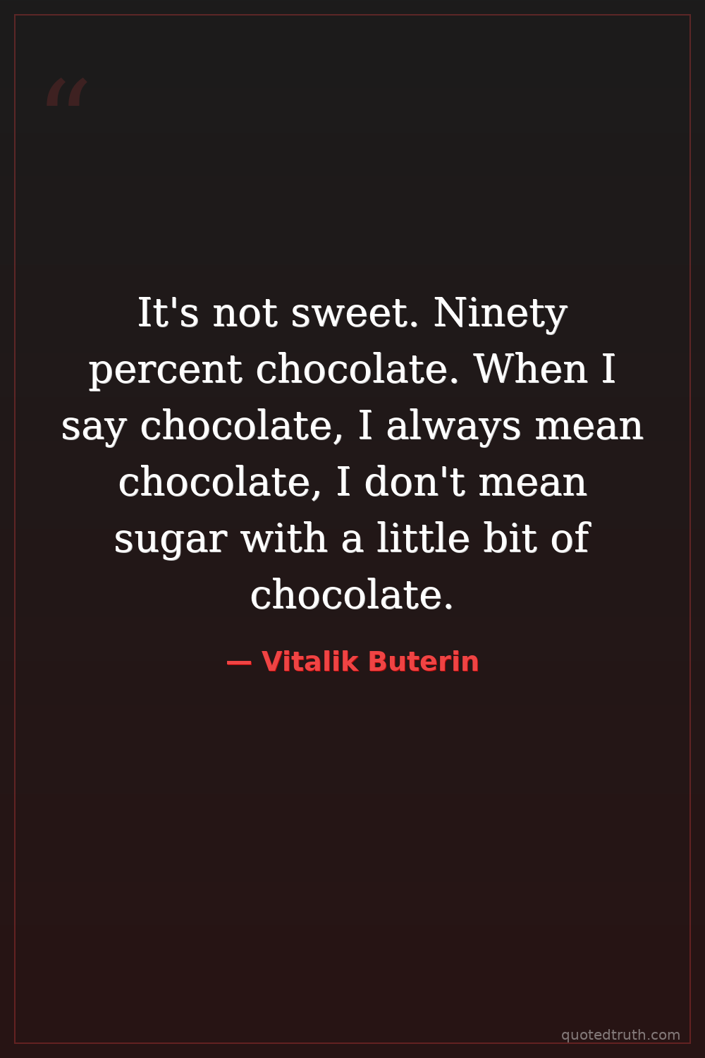 It's not sweet. Ninety percent chocolate. When I say chocolate, I always mean chocolate, I don't mean sugar with a little bit of chocolate.