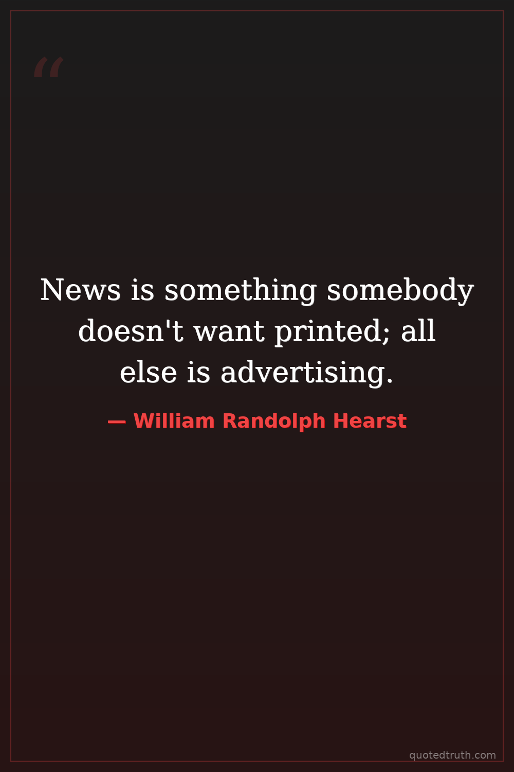 News is something somebody doesn't want printed; all else is advertising.