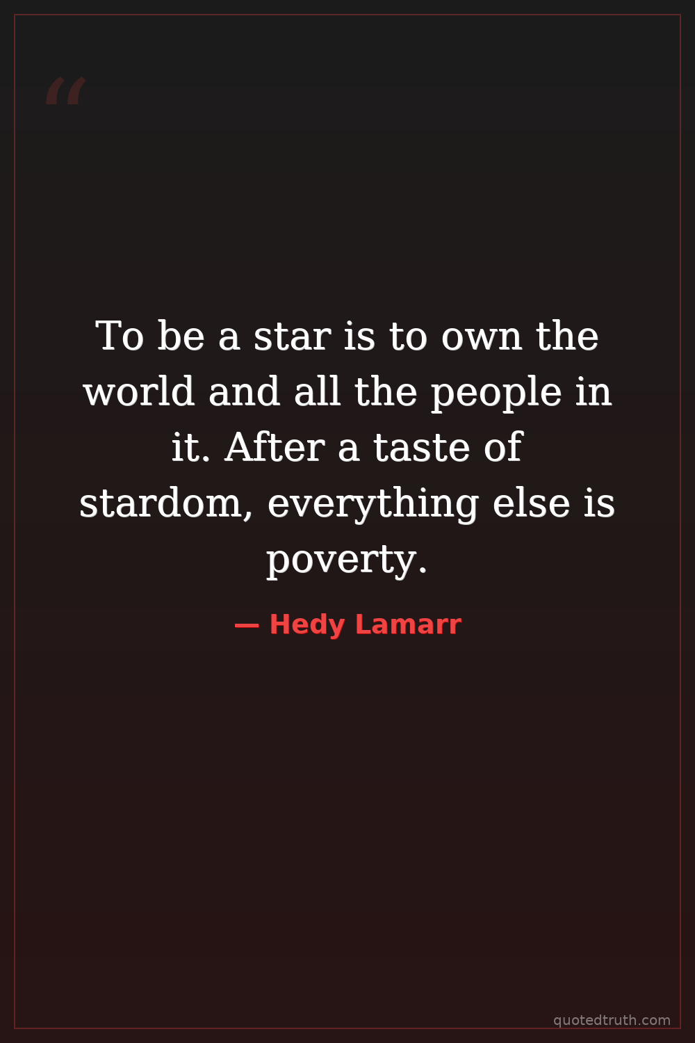To be a star is to own the world and all the people in it. After a taste of stardom, everything else is poverty.