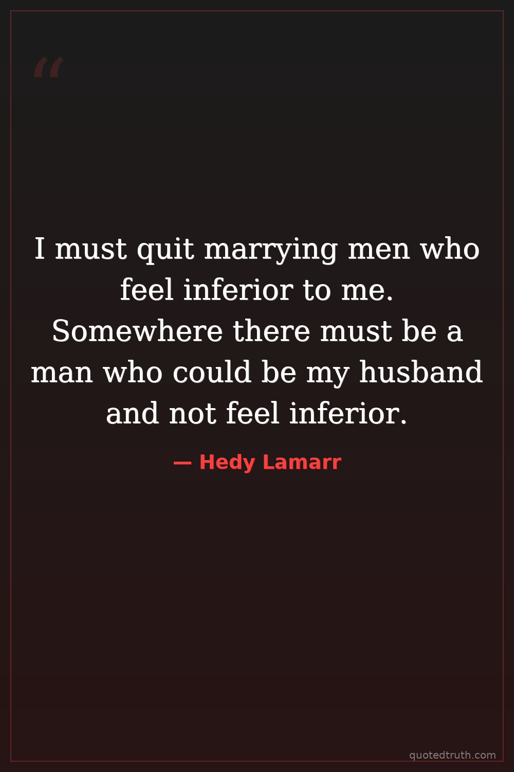 I must quit marrying men who feel inferior to me. Somewhere there must be a man who could be my husband and not feel inferior.