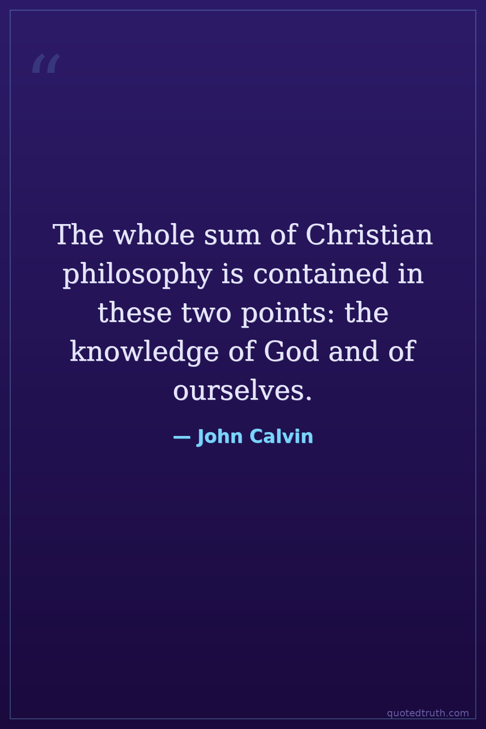 The whole sum of Christian philosophy is contained in these two points: the knowledge of God and of ourselves.