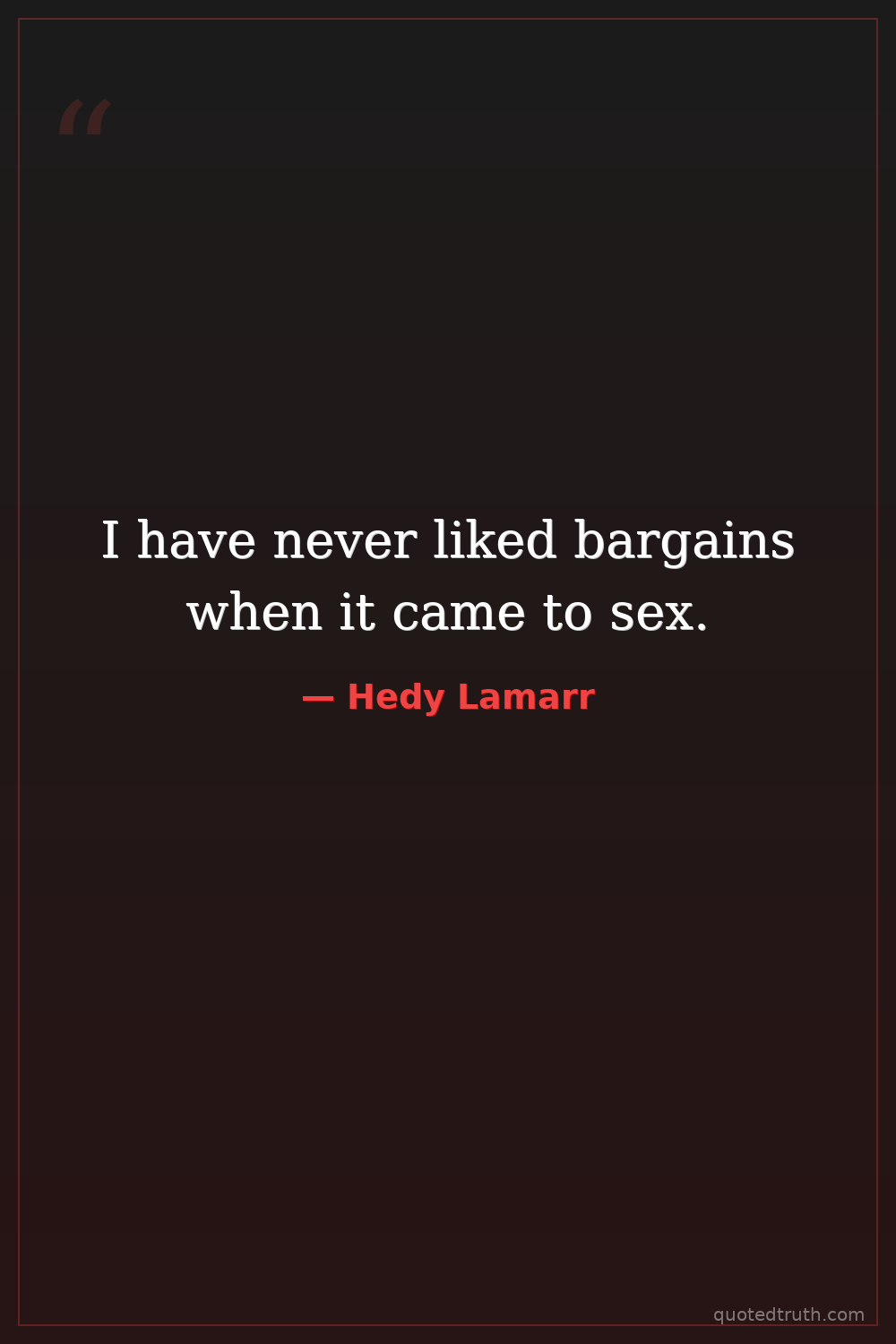 I have never liked bargains when it came to sex.