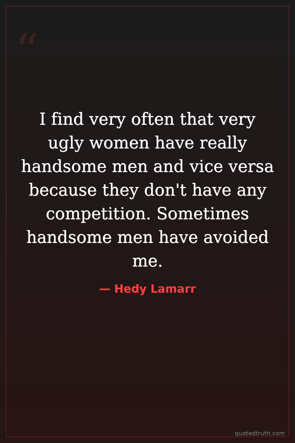 I find very often that very ugly women have really handsome men and vice versa because they don't have any competition. Sometimes handsome men have avoided me.