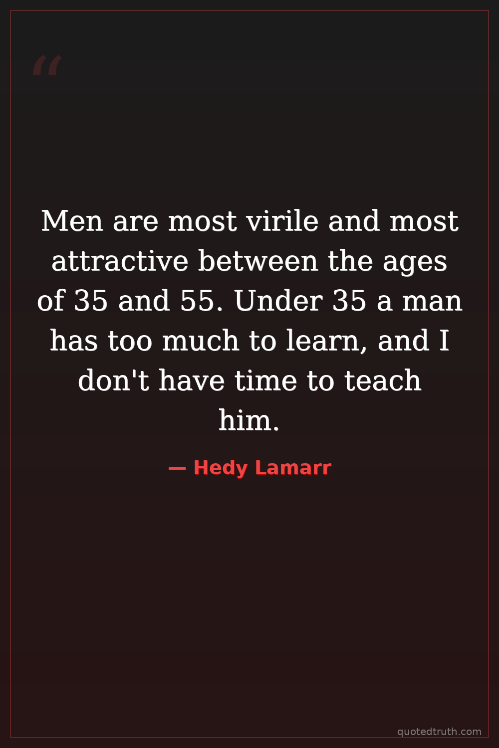 Men are most virile and most attractive between the ages of 35 and 55. Under 35 a man has too much to learn, and I don't have time to teach him.