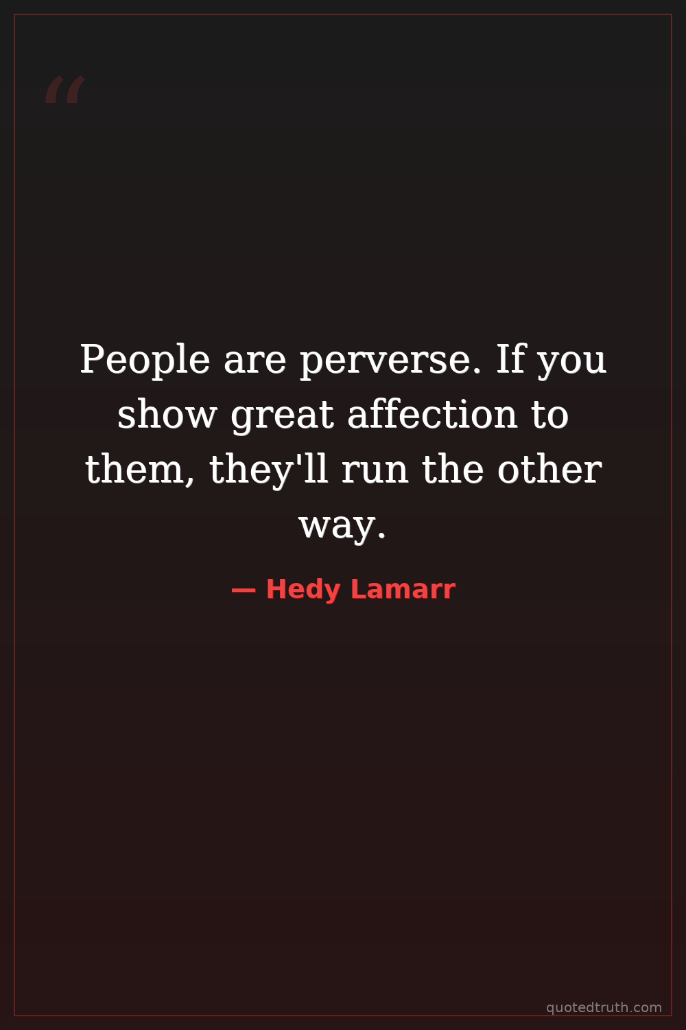 People are perverse. If you show great affection to them, they'll run the other way.