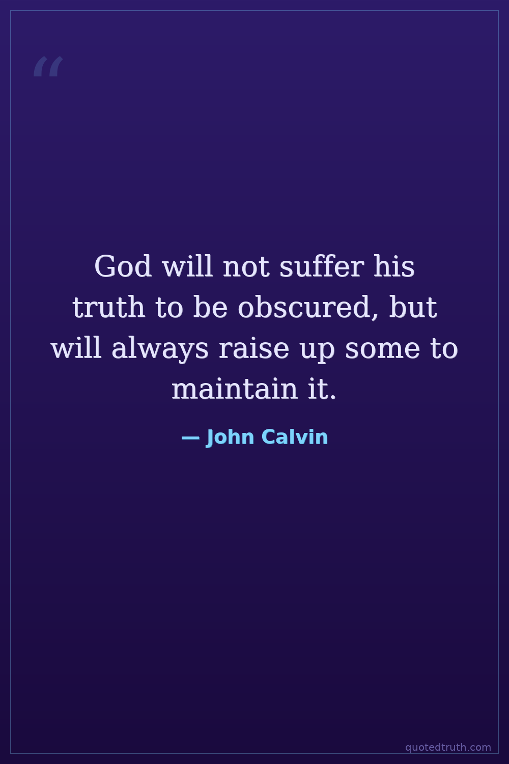 God will not suffer his truth to be obscured, but will always raise up some to maintain it.