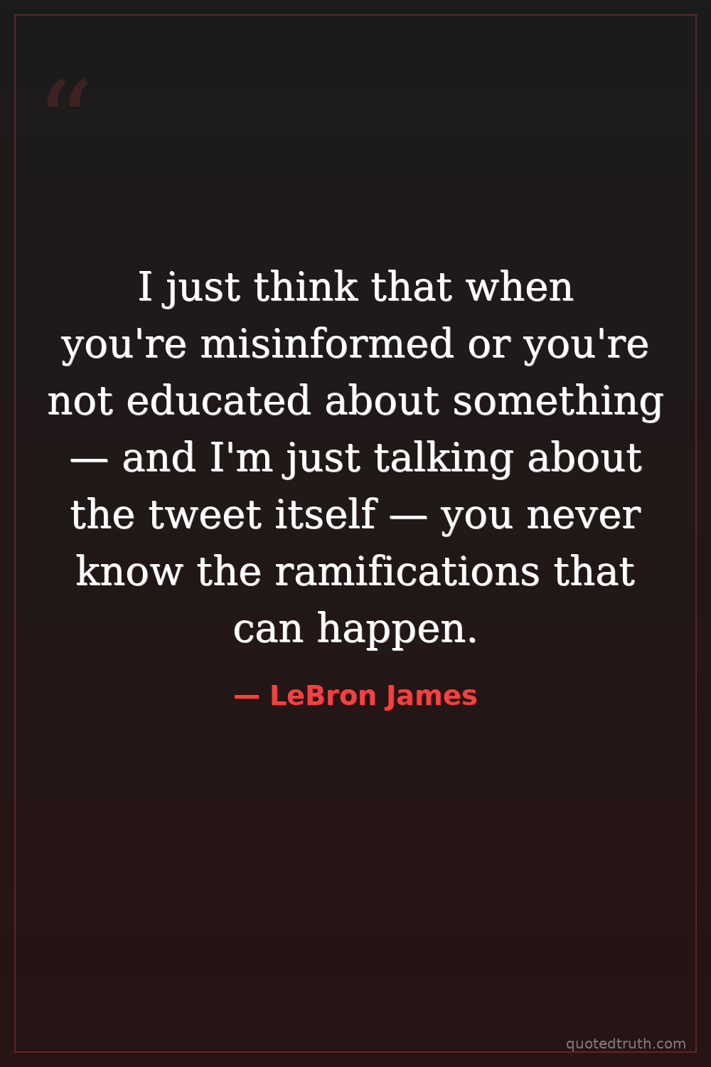 I just think that when you're misinformed or you're not educated about something — and I'm just talking about the tweet itself — you never know the ramifications that can happen.