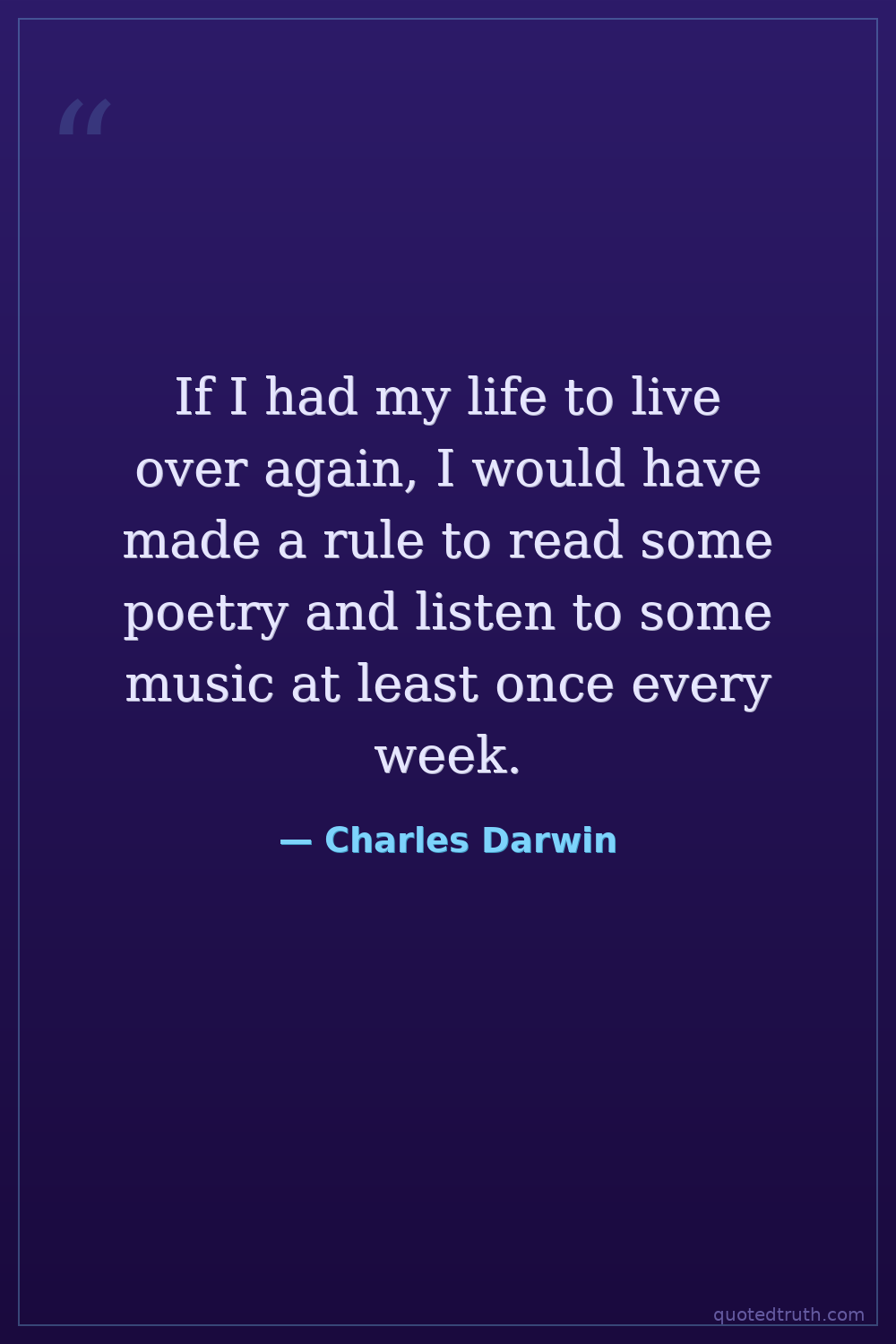 If I had my life to live over again, I would have made a rule to read some poetry and listen to some music at least once every week.