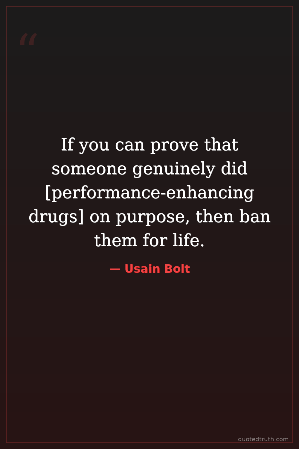 If you can prove that someone genuinely did [performance-enhancing drugs] on purpose, then ban them for life.