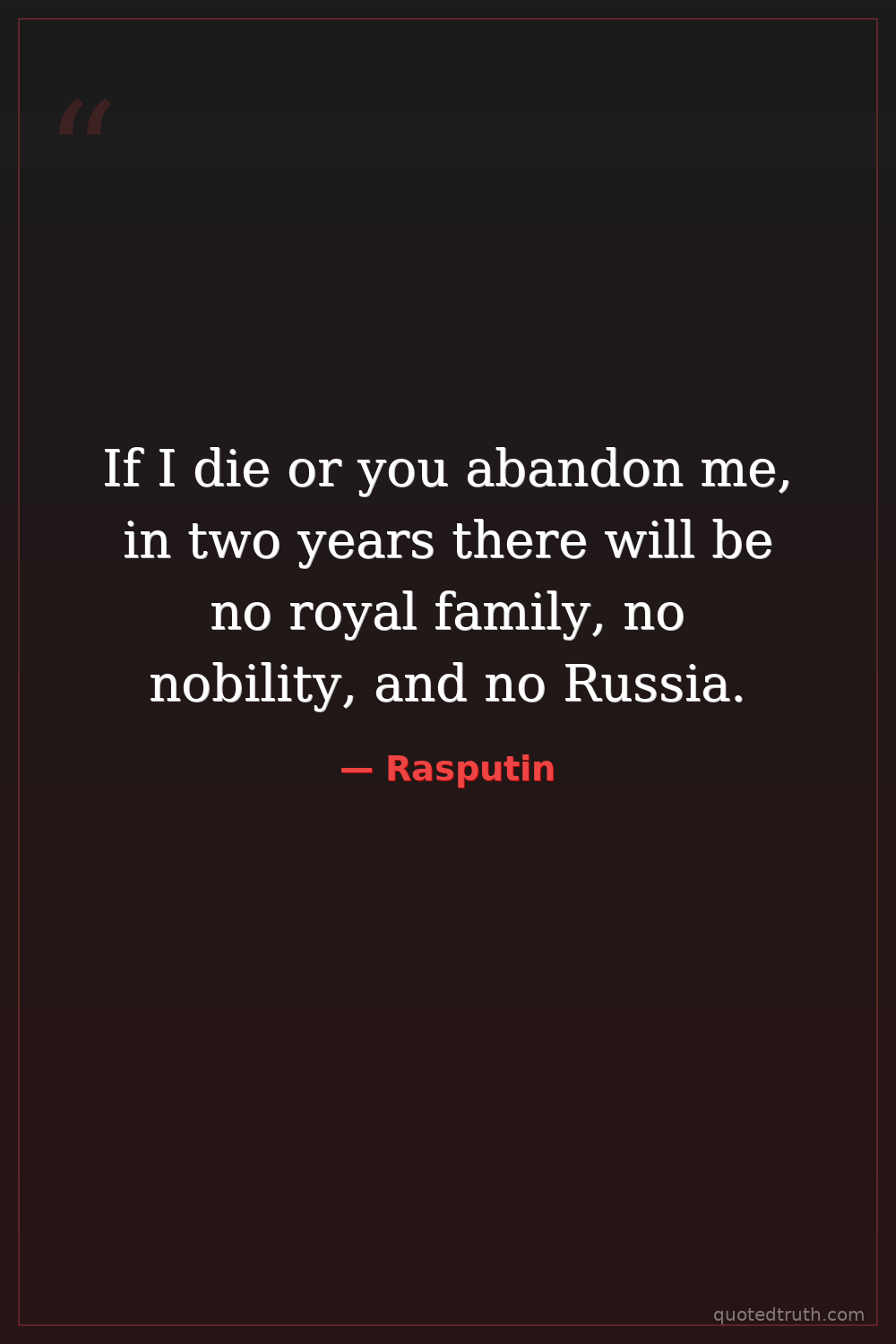 If I die or you abandon me, in two years there will be no royal family, no nobility, and no Russia.