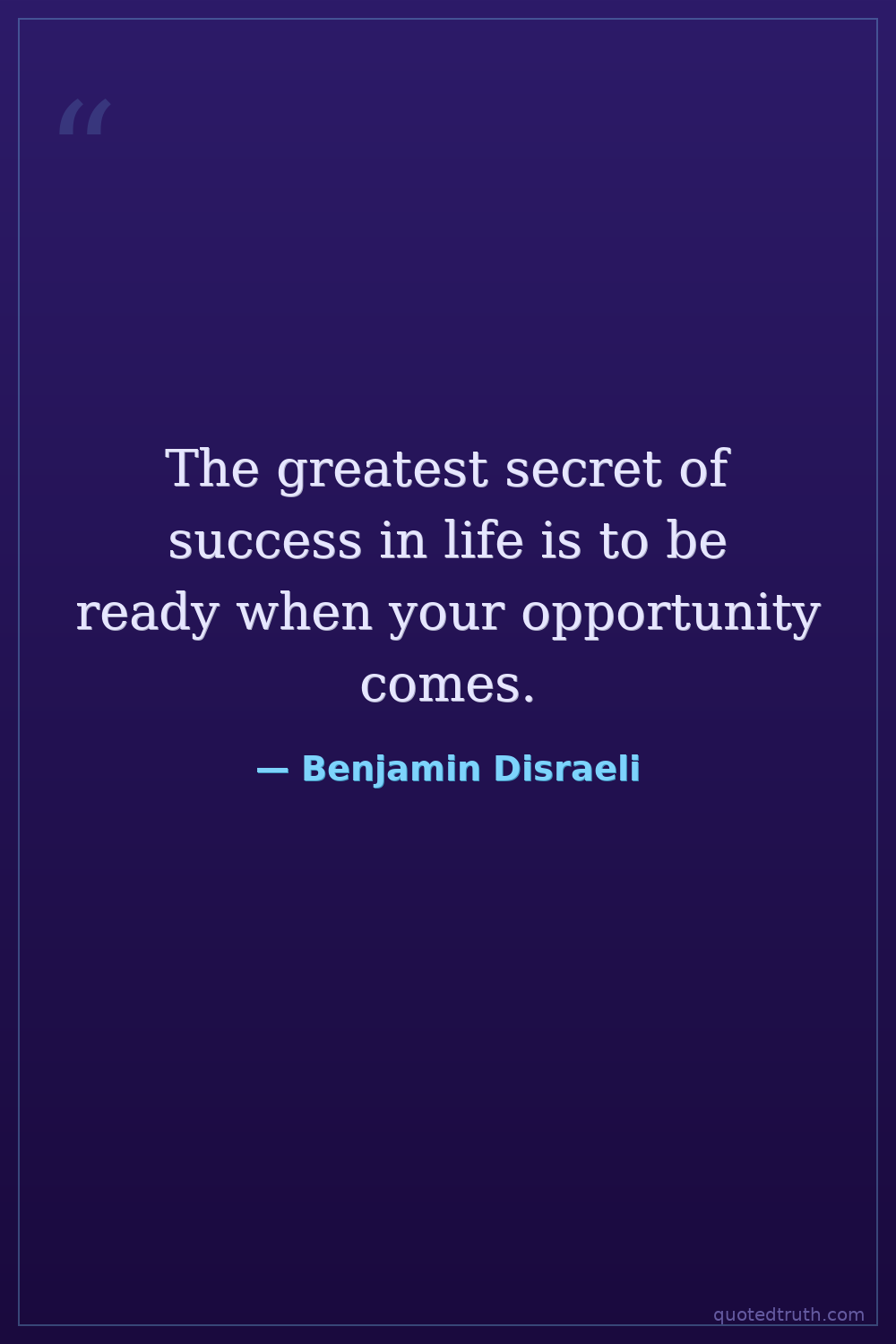 The greatest secret of success in life is to be ready when your opportunity comes.