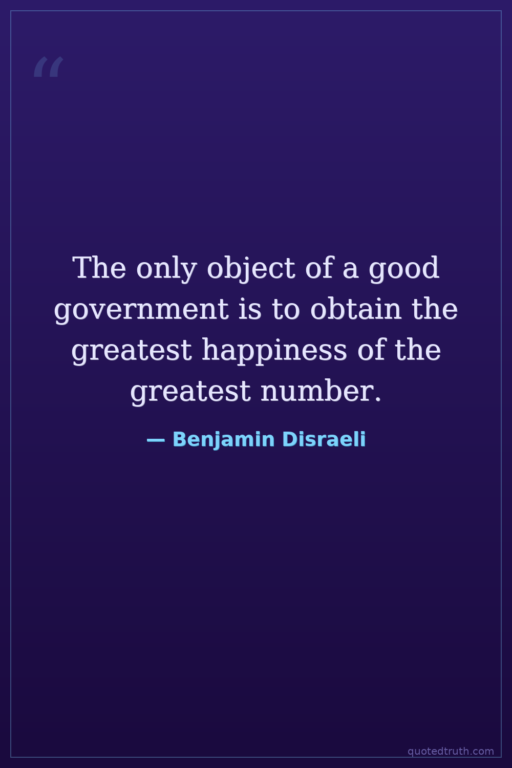 The only object of a good government is to obtain the greatest happiness of the greatest number.