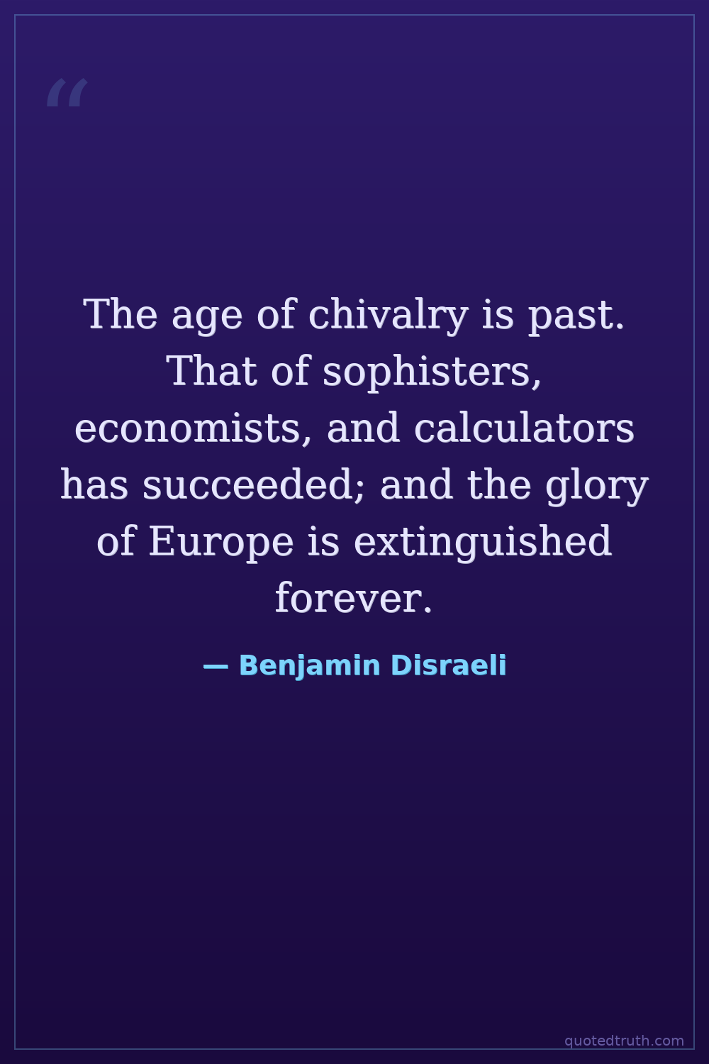 The age of chivalry is past. That of sophisters, economists, and calculators has succeeded; and the glory of Europe is extinguished forever.