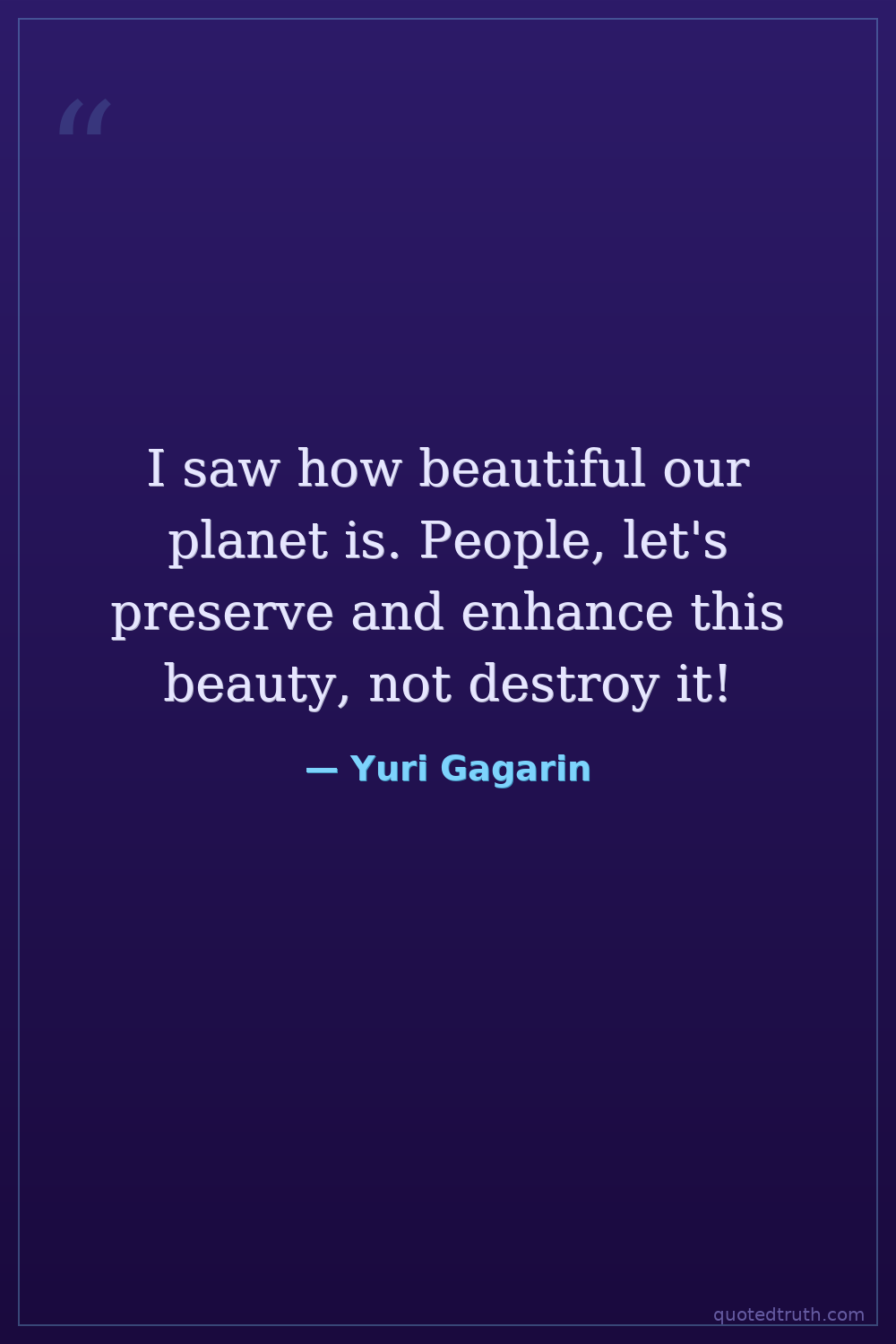 I saw how beautiful our planet is. People, let's preserve and enhance this beauty, not destroy it!