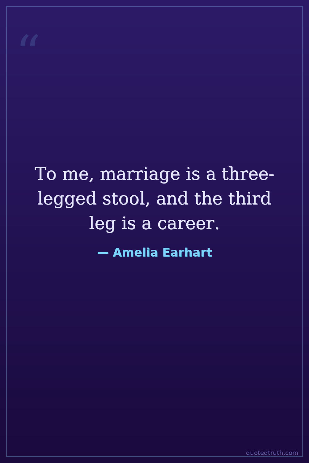 To me, marriage is a three-legged stool, and the third leg is a career.