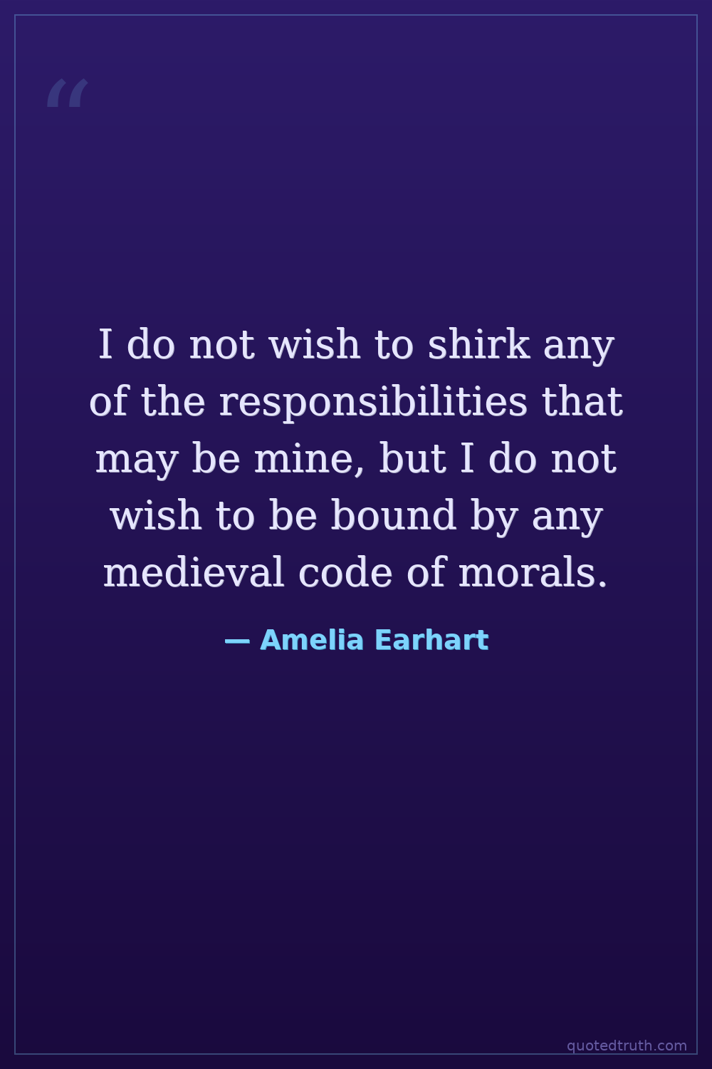 I do not wish to shirk any of the responsibilities that may be mine, but I do not wish to be bound by any medieval code of morals.
