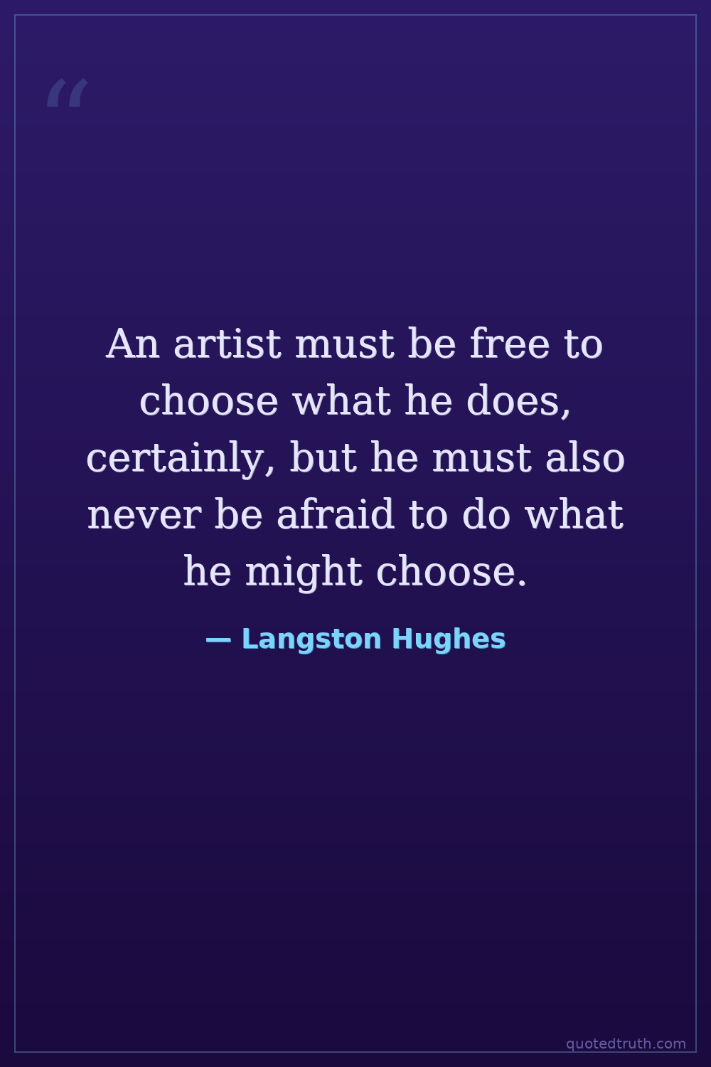 An artist must be free to choose what he does, certainly, but he must also never be afraid to do what he might choose.