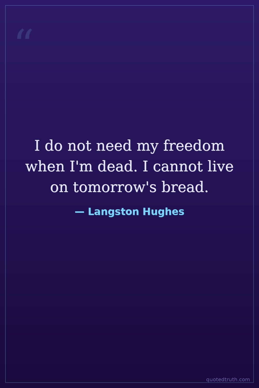 I do not need my freedom when I'm dead. I cannot live on tomorrow's bread.