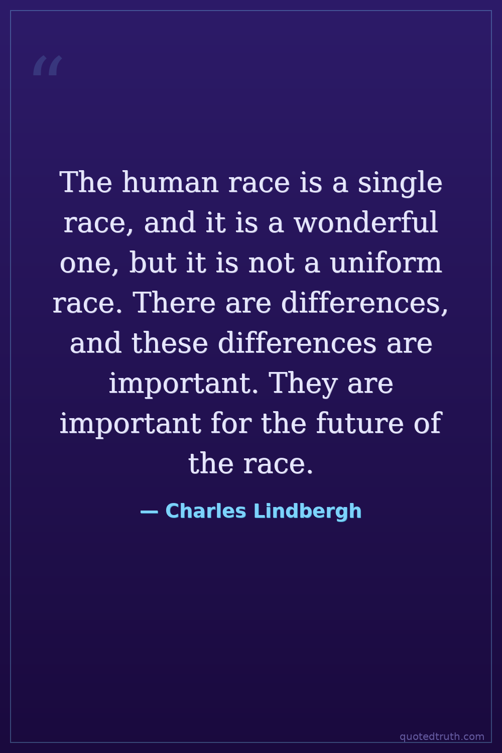 The human race is a single race, and it is a wonderful one, but it is not a uniform race. There are differences, and these differences are important. They are important for the future of the race.