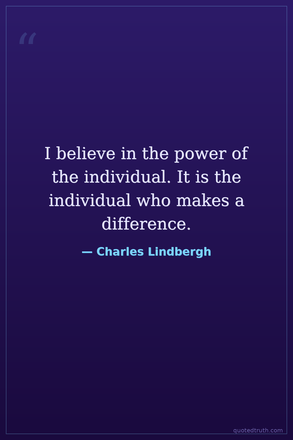I believe in the power of the individual. It is the individual who makes a difference.