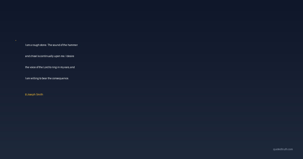 I am a rough stone. The sound of the hammer and chisel is continually upon me. I desire the voice of the Lord to ring in my ears, and I am willing to bear the consequence.