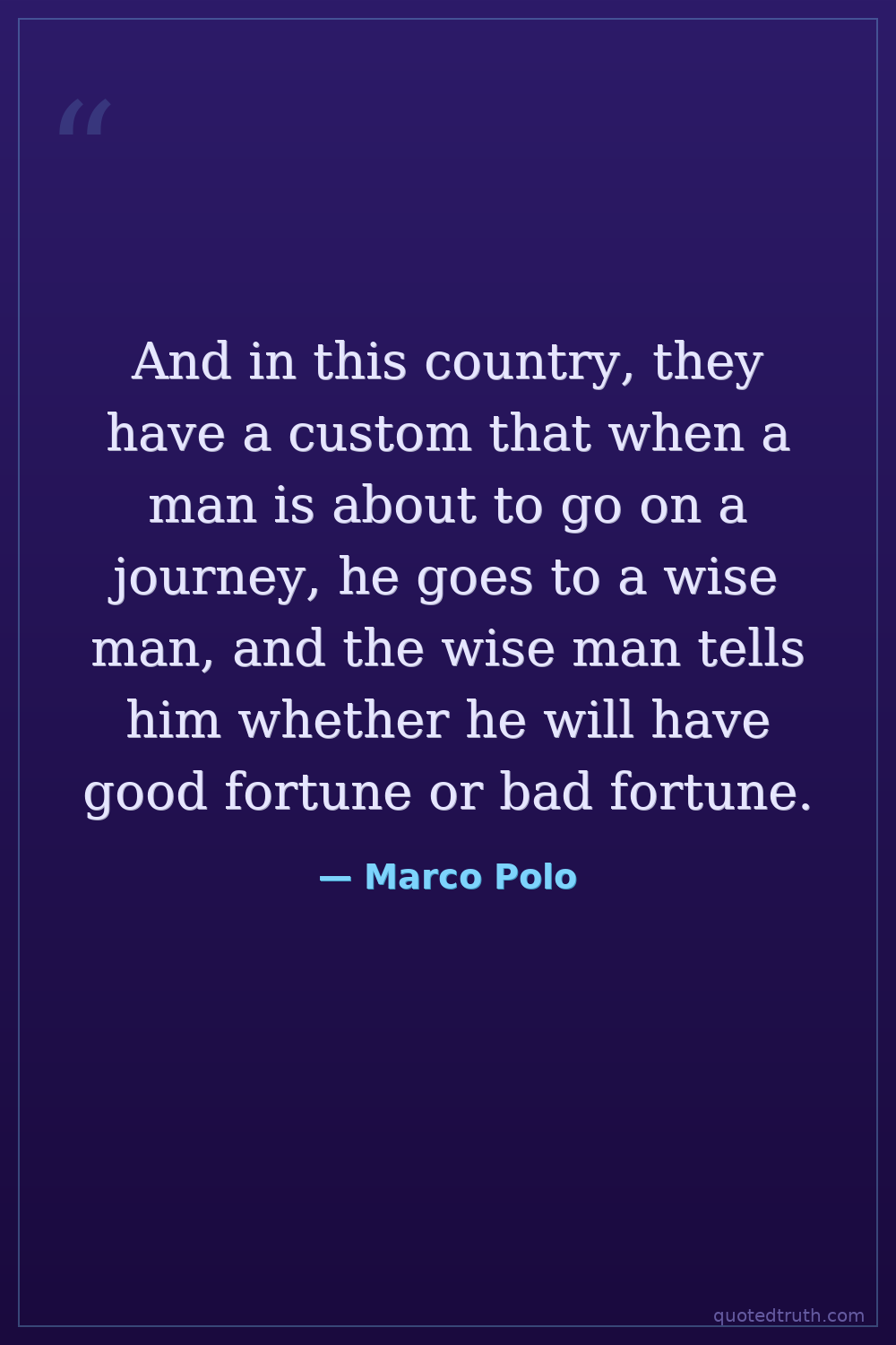 And in this country, they have a custom that when a man is about to go on a journey, he goes to a wise man, and the wise man tells him whether he will have good fortune or bad fortune.