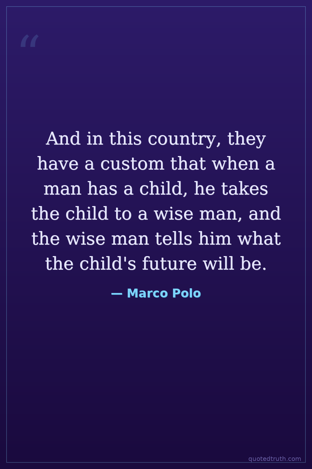 And in this country, they have a custom that when a man has a child, he takes the child to a wise man, and the wise man tells him what the child's future will be.