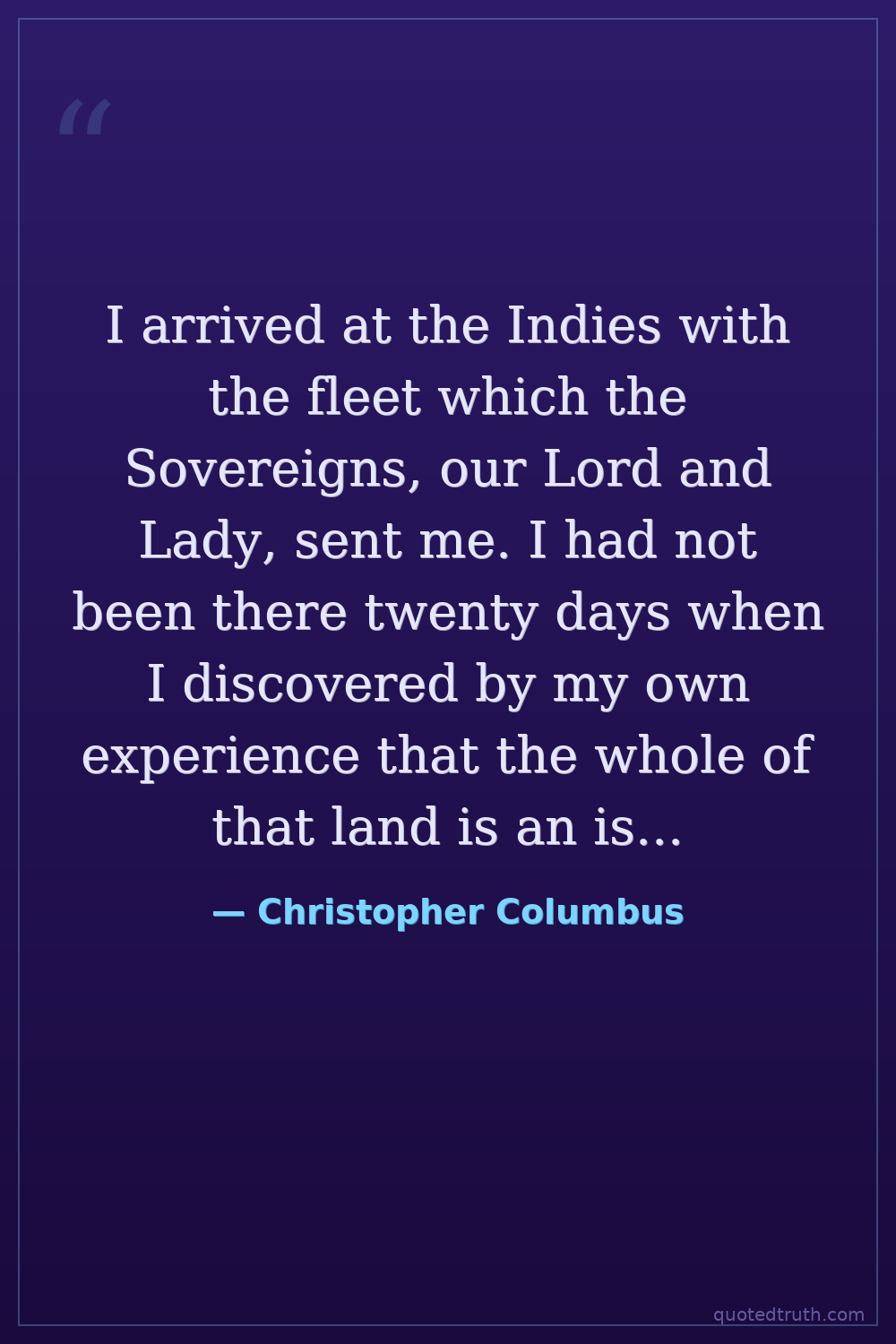 I arrived at the Indies with the fleet which the Sovereigns, our Lord and Lady, sent me. I had not been there twenty days when I discovered by my own experience that the whole of that land is an island.
