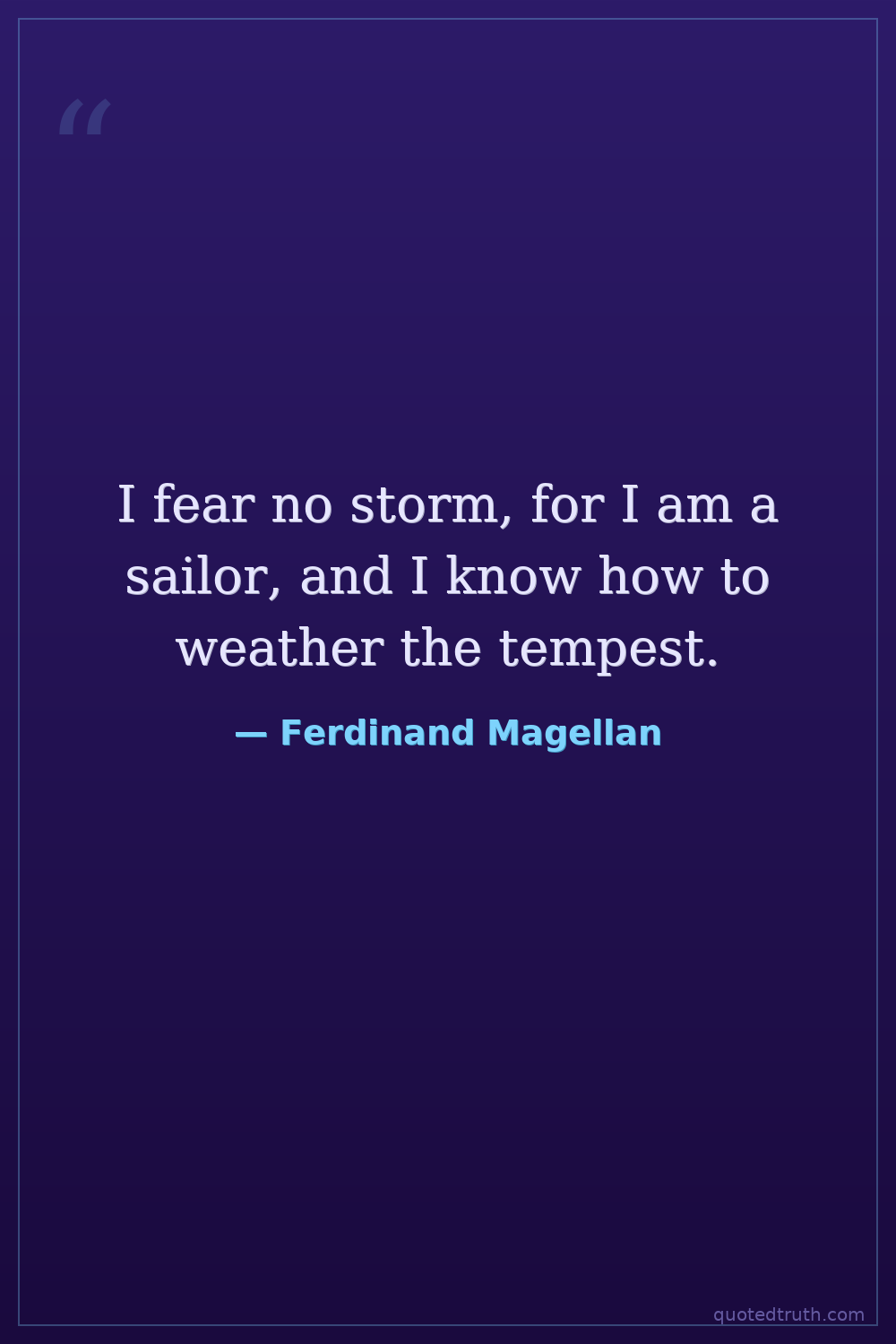 I fear no storm, for I am a sailor, and I know how to weather the tempest.