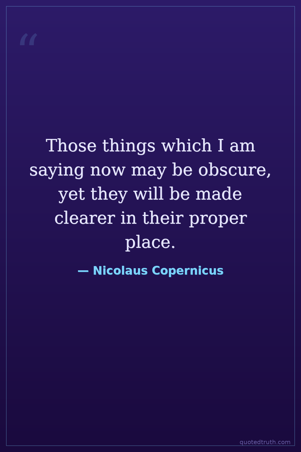 A statement within his writings, possibly addressing the initial complexity of his heliocentric model.