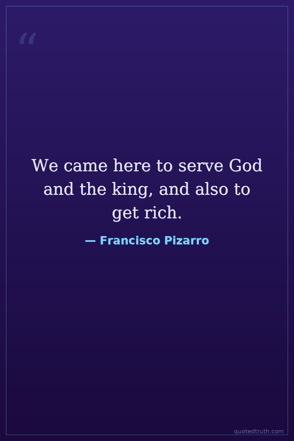 We came here to serve God and the king, and also to get rich.