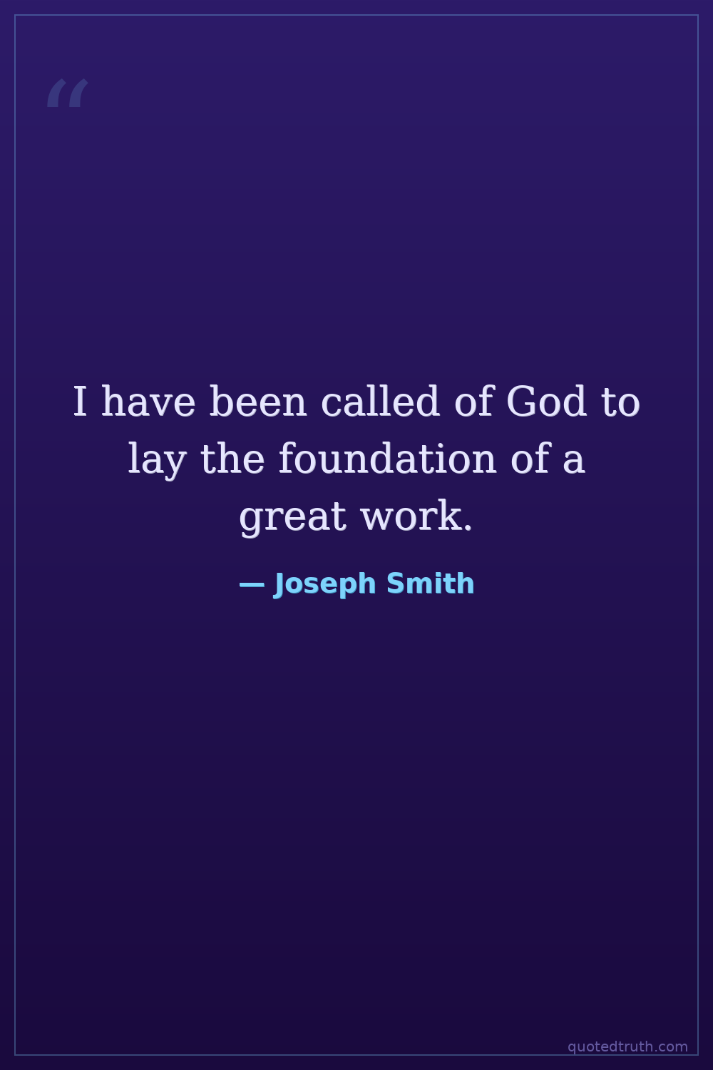 I have been called of God to lay the foundation of a great work.