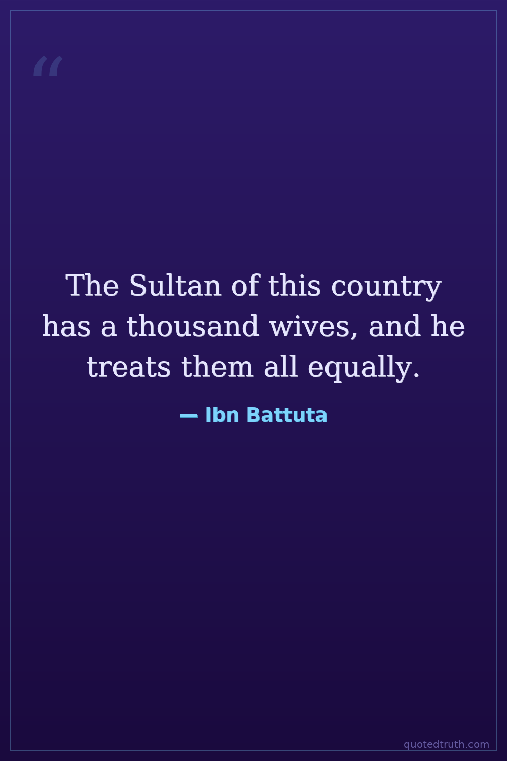 The Sultan of this country has a thousand wives, and he treats them all equally.