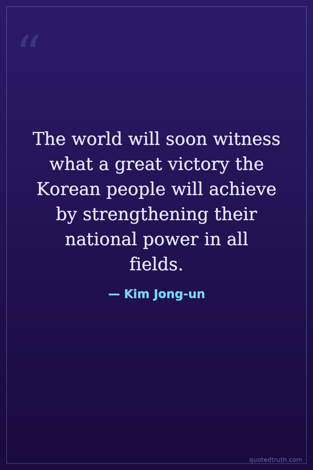 The world will soon witness what a great victory the Korean people will achieve by strengthening their national power in all fields.