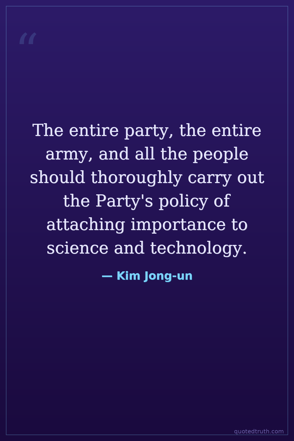 The entire party, the entire army, and all the people should thoroughly carry out the Party's policy of attaching importance to science and technology.