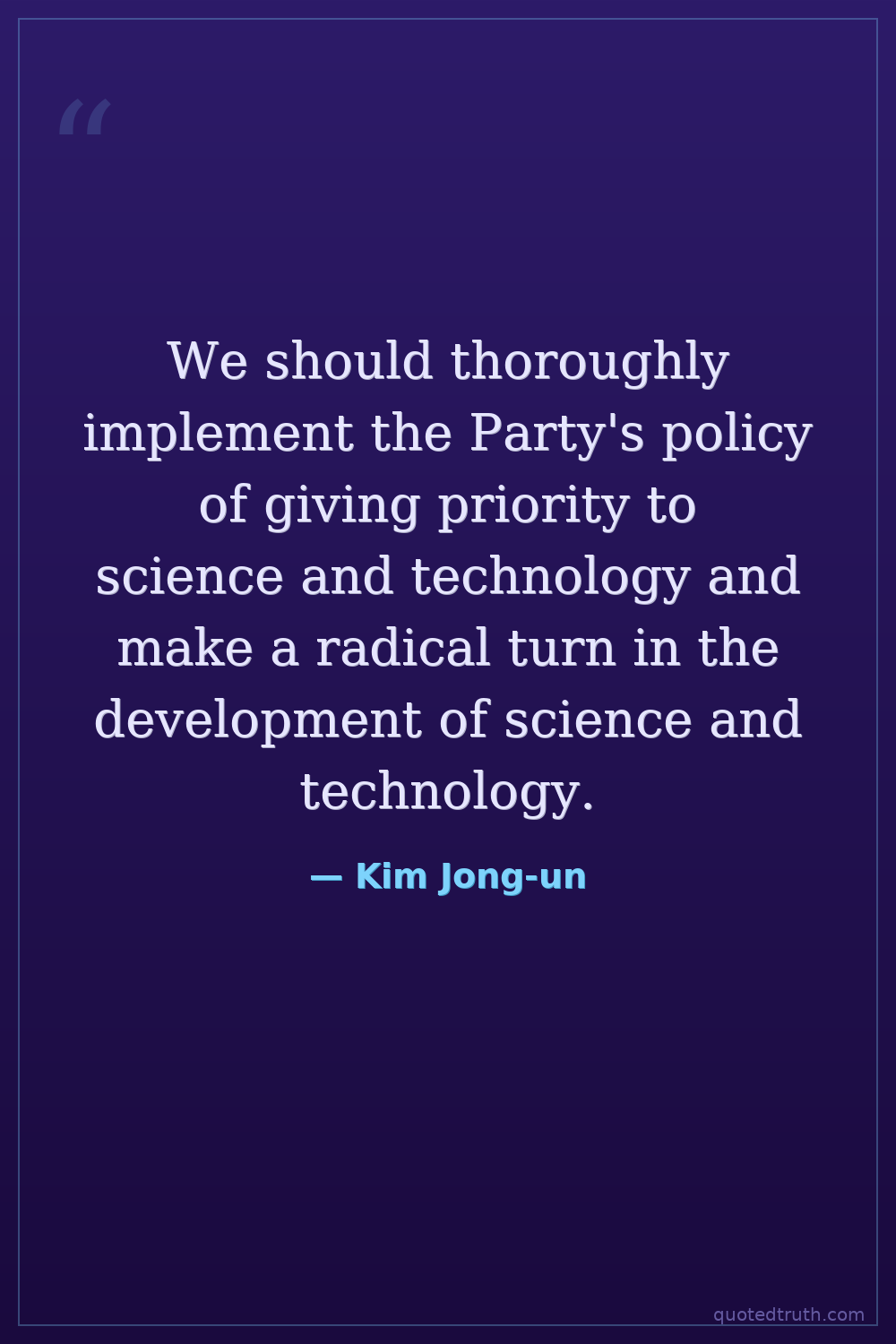 We should thoroughly implement the Party's policy of giving priority to science and technology and make a radical turn in the development of science and technology.