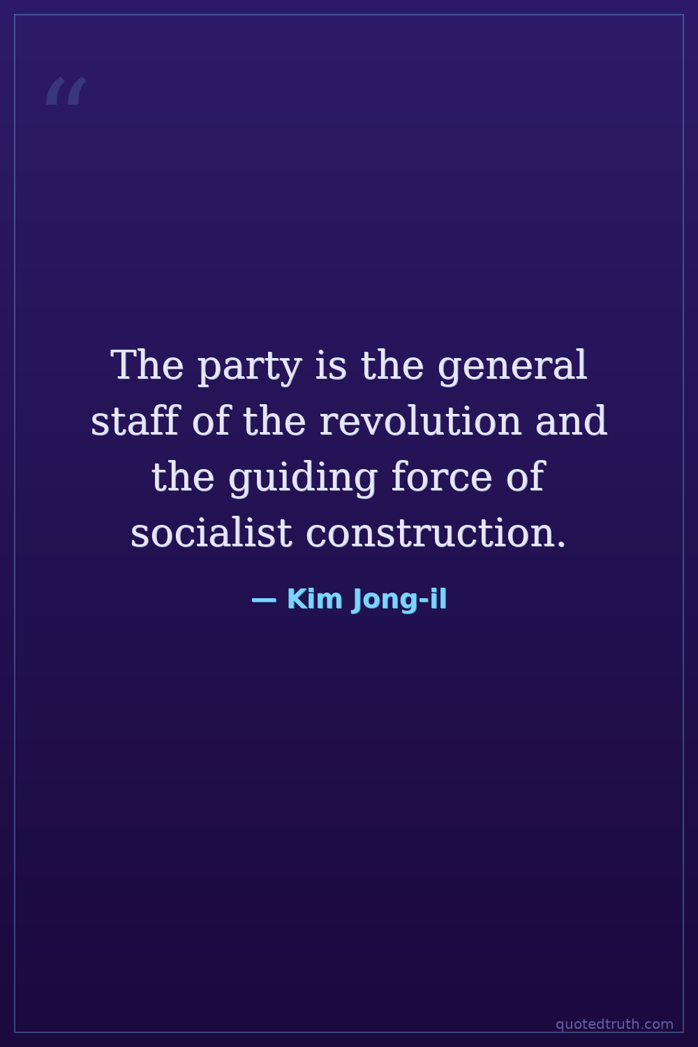The party is the general staff of the revolution and the guiding force of socialist construction.