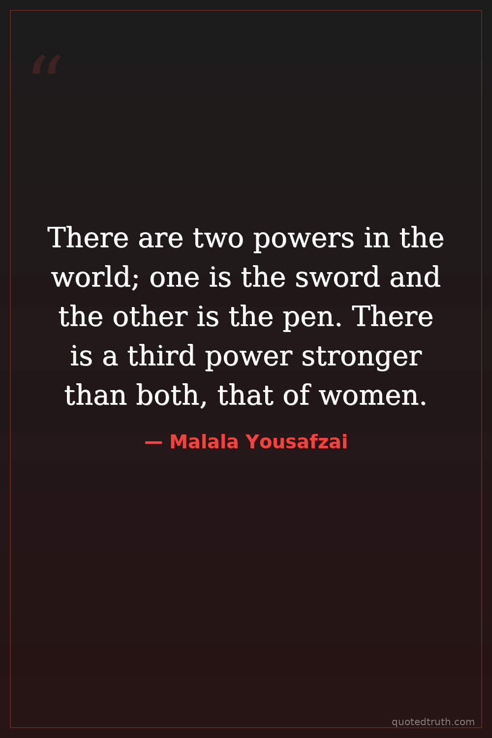 There are two powers in the world; one is the sword and the other is the pen. There is a third power stronger than both, that of women.