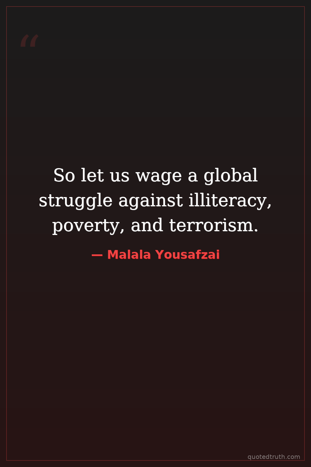 So let us wage a global struggle against illiteracy, poverty, and terrorism.