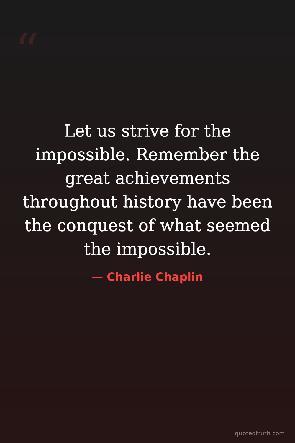Let us strive for the impossible. Remember the great achievements throughout history have been the conquest of what seemed the impossible.