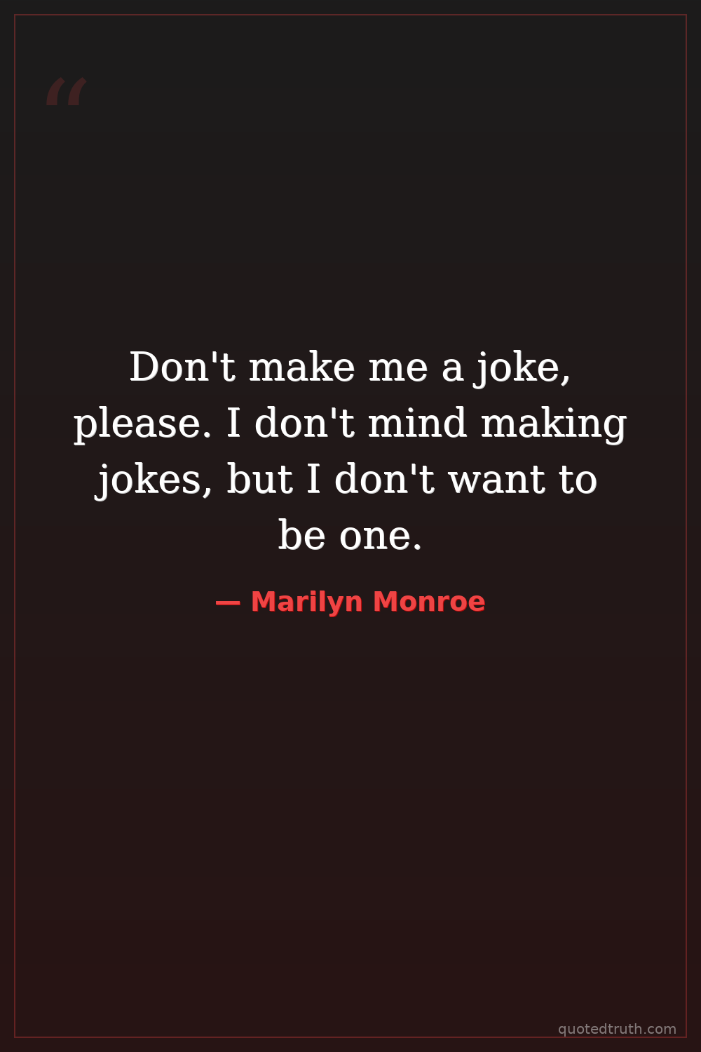 Don't make me a joke, please. I don't mind making jokes, but I don't want to be one.