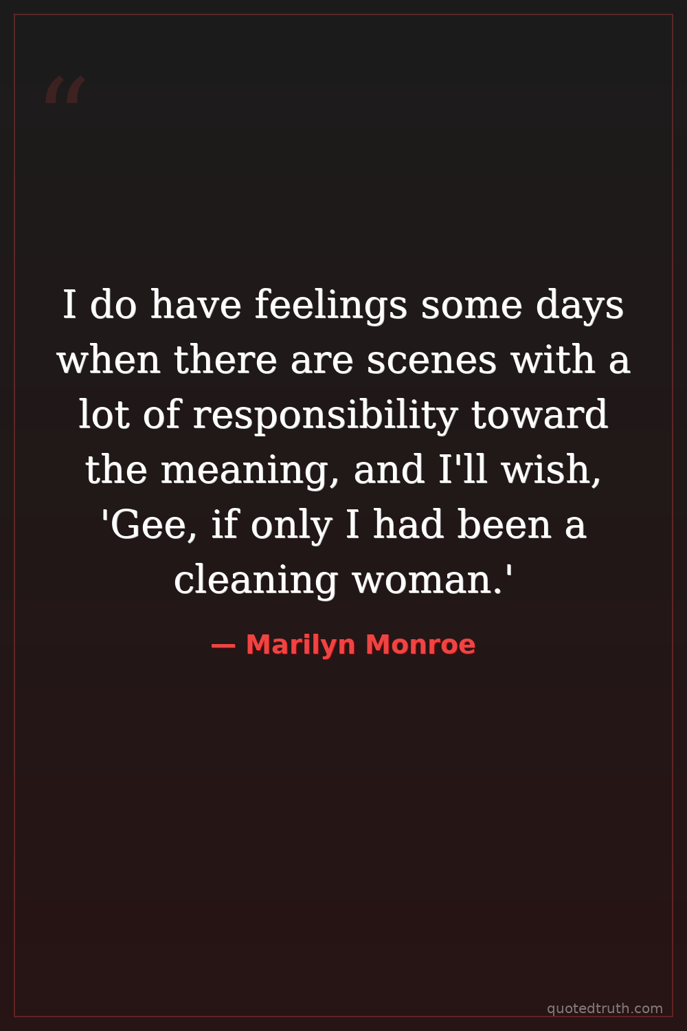 I do have feelings some days when there are scenes with a lot of responsibility toward the meaning, and I'll wish, 'Gee, if only I had been a cleaning woman.'