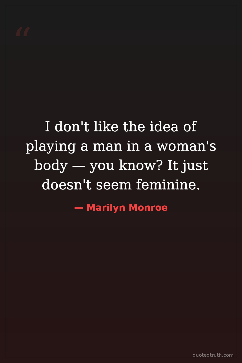 I don't like the idea of playing a man in a woman's body — you know? It just doesn't seem feminine.