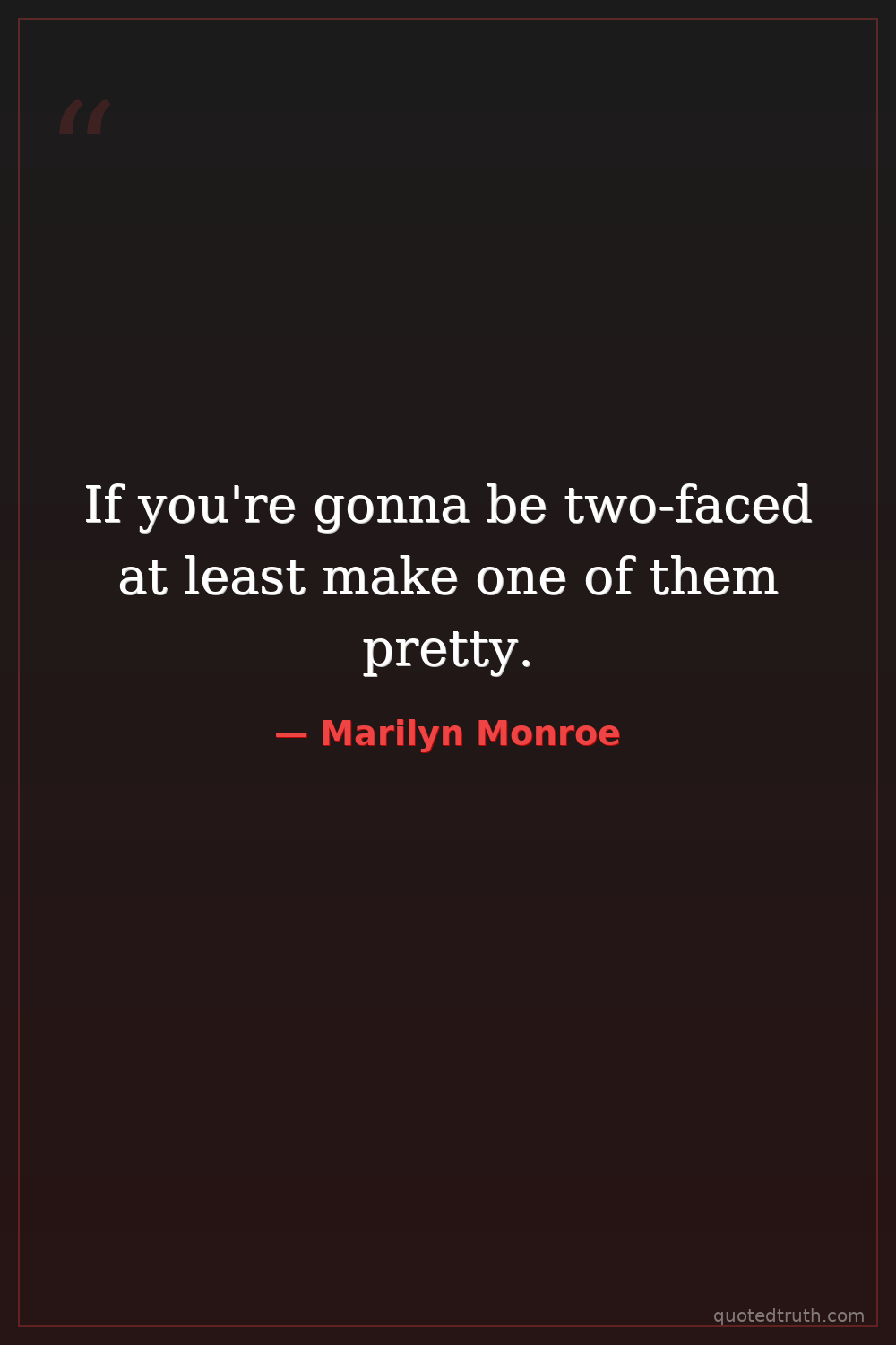 If you're gonna be two-faced at least make one of them pretty.