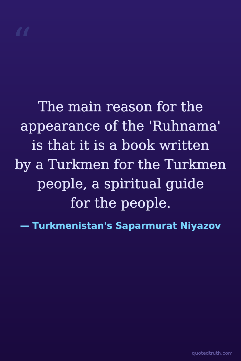 The main reason for the appearance of the 'Ruhnama' is that it is a book written by a Turkmen for the Turkmen people, a spiritual guide for the people.