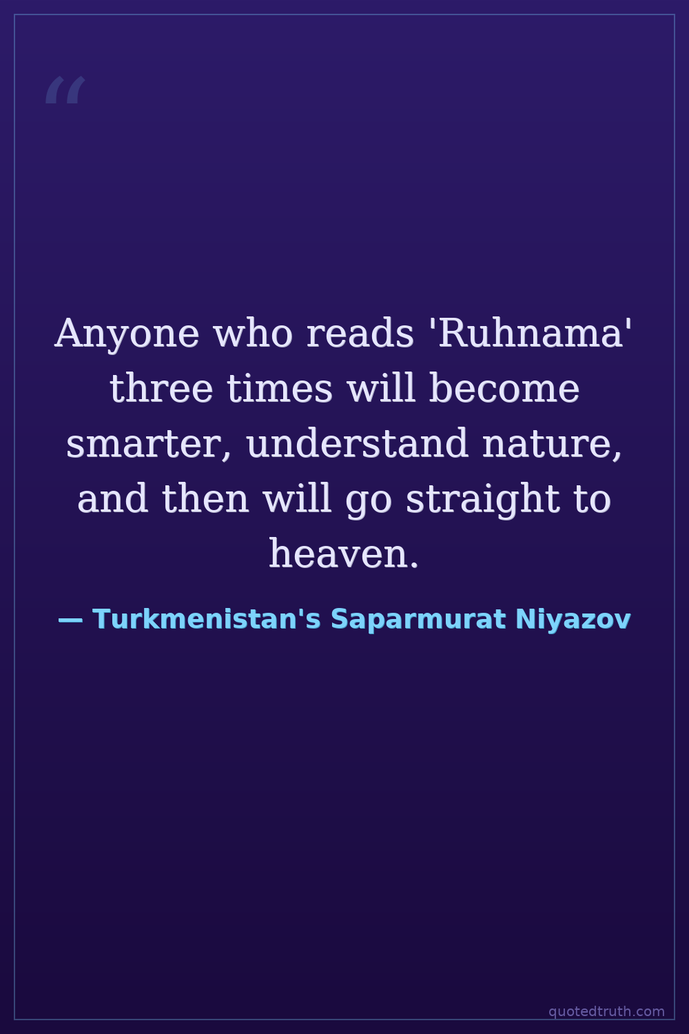 Anyone who reads 'Ruhnama' three times will become smarter, understand nature, and then will go straight to heaven.