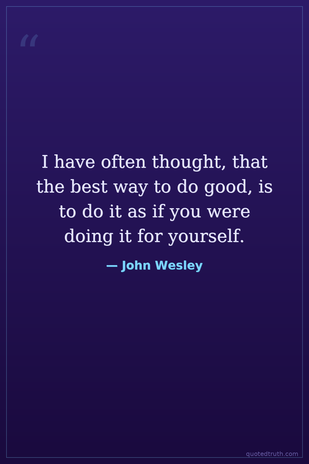 I have often thought, that the best way to do good, is to do it as if you were doing it for yourself.