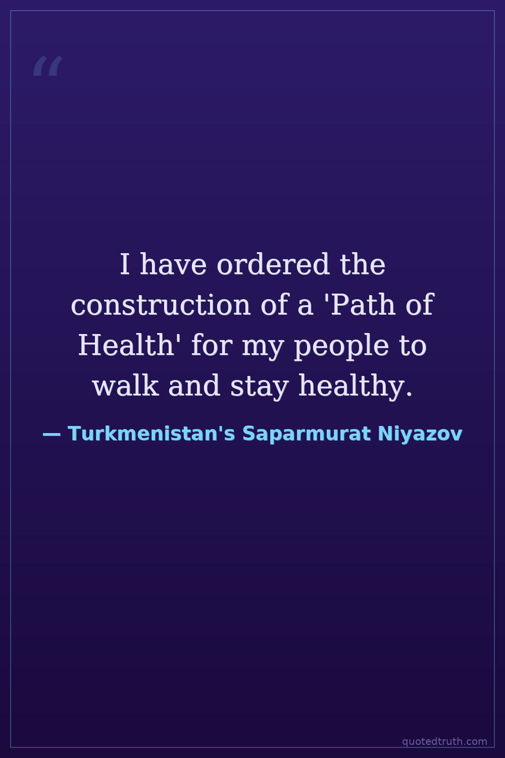 I have ordered the construction of a 'Path of Health' for my people to walk and stay healthy.